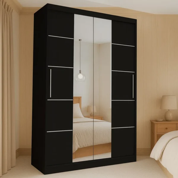 Full-Length Mirrored Panels: Perfect 2 mirrored sliding wardrobe doors that amplify natural light and add depth.