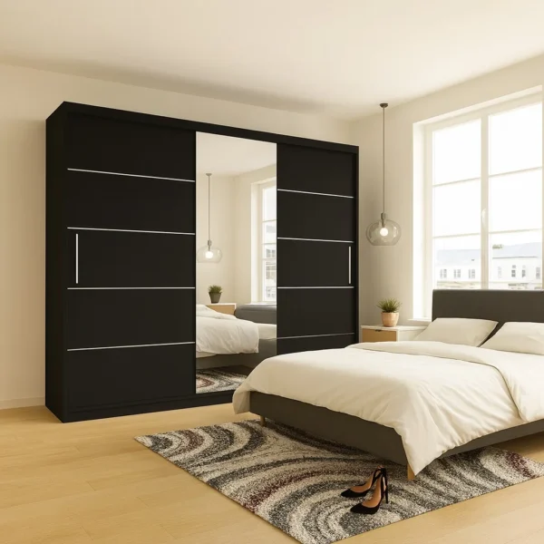 The wooden wardrobe sliding doors glide effortlessly, saving valuable floor space while giving your room a clean, contemporary look. Each full-length mirror panel reflects light beautifully, creating the illusion of a larger, brighter bedroom — perfect for both small and spacious interiors alike.