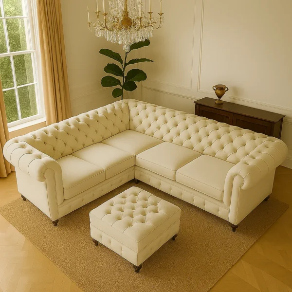 Looking for the best of style, comfort, and luxury? Chesterfield corner sofa introduces style into your living room like no other. Rolled arms, button stitching, and plenty of room in the interior provide both a style statement and comfort.