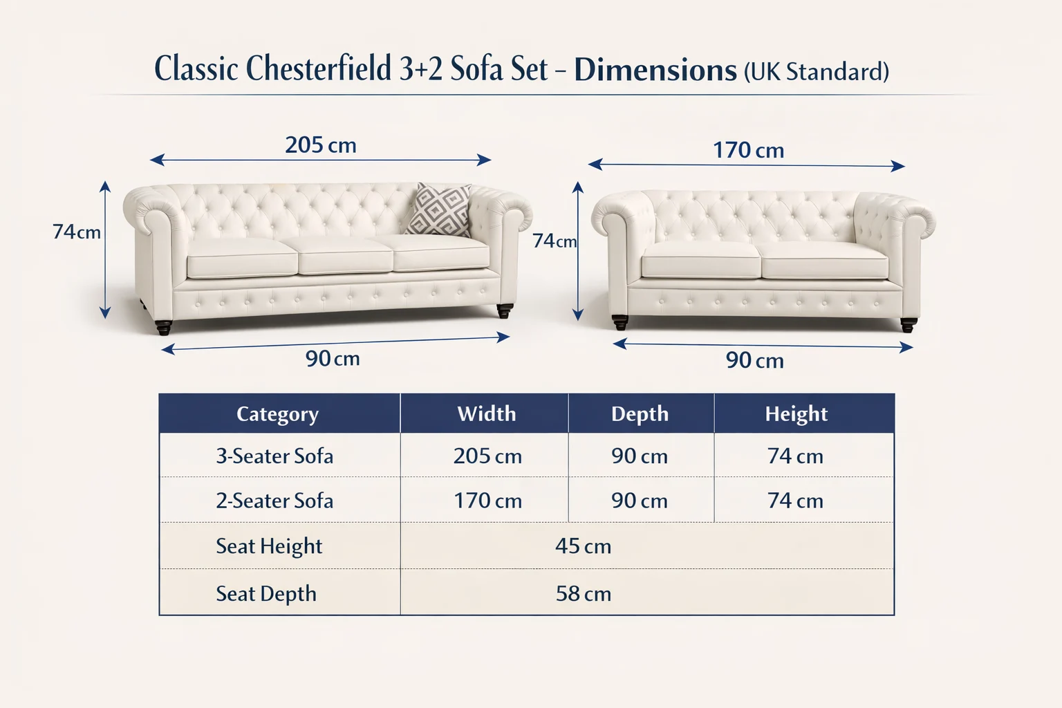 Classic Chesterfield 3+2 Sofa Set – Exquisite UK Luxury
