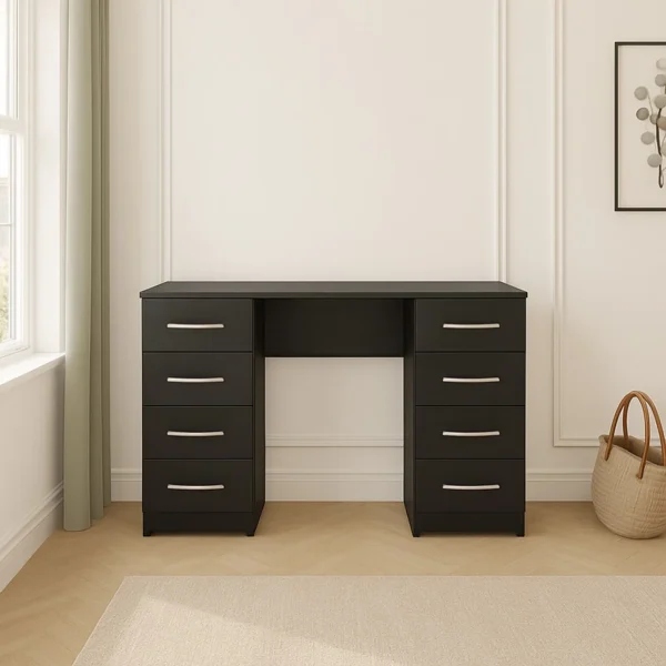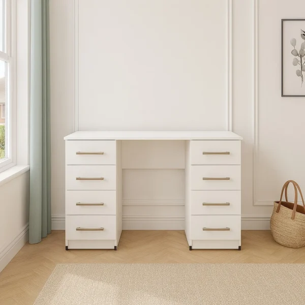 With six spacious drawers, this desk offers excellent storage for stationery, files, gadgets, or personal essentials, helping you maintain a neat and organised workspace. Smooth, easy-pull handles ensure effortless access to your items, while the wide desktop surface provides ample room for laptops, monitors, or writing tasks.