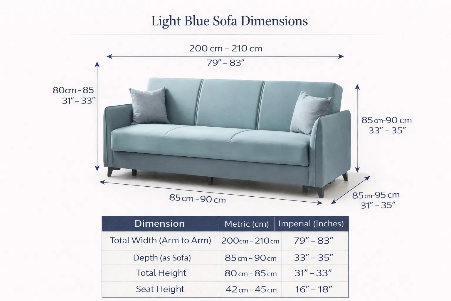 | 3-Seater | W 220cm | D 82cm | H 92cm | Bed: 110cm × 190cm |